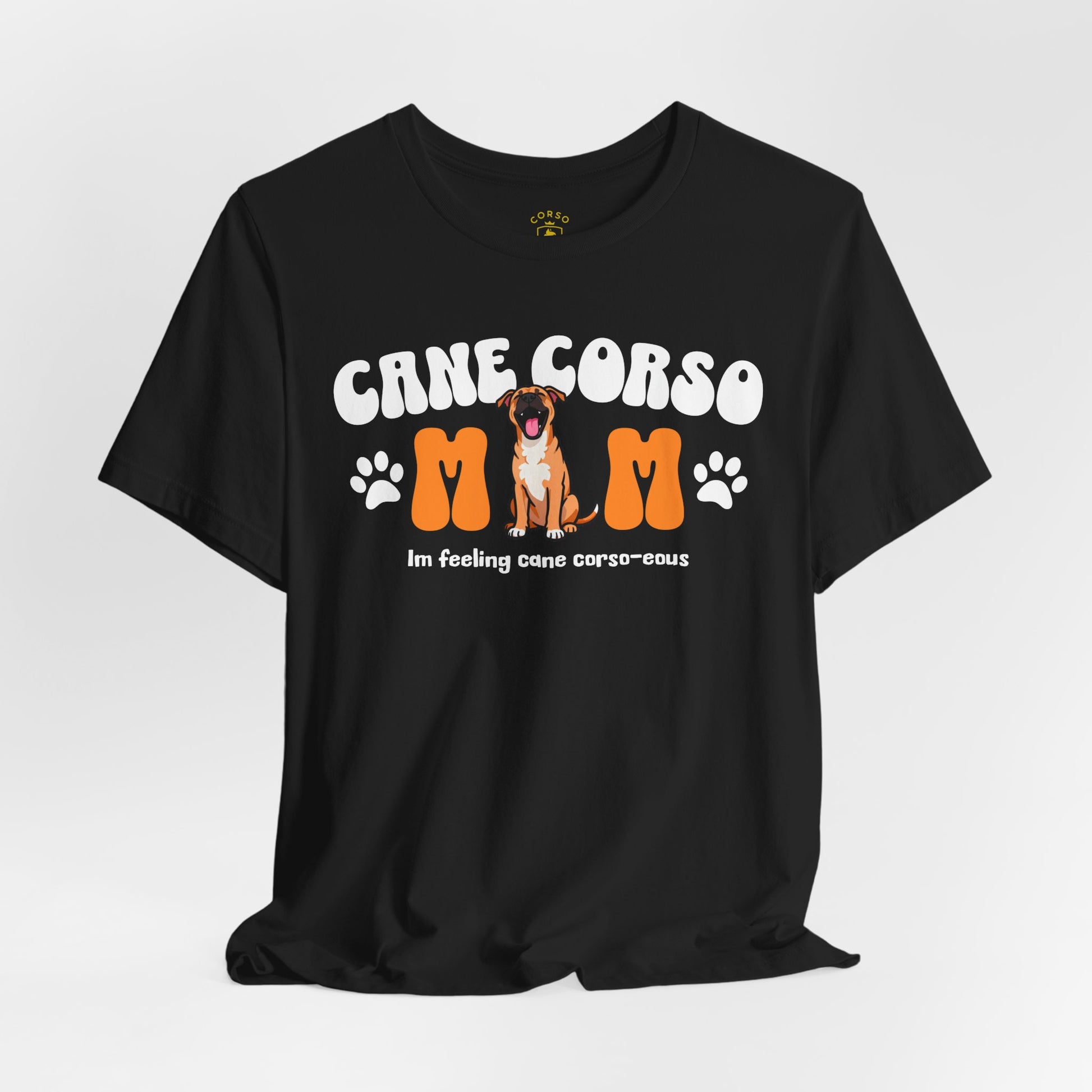 Show your Corso love in a playful, retro-inspired tee. The “CANE CORSO MOM” design mixes bubbly typography, paw prints and a cute pup graphic for a warm, friendly vibe that pops on dark shirts. Printed with crisp DTG graphics for sharp lines and long-lasting color.